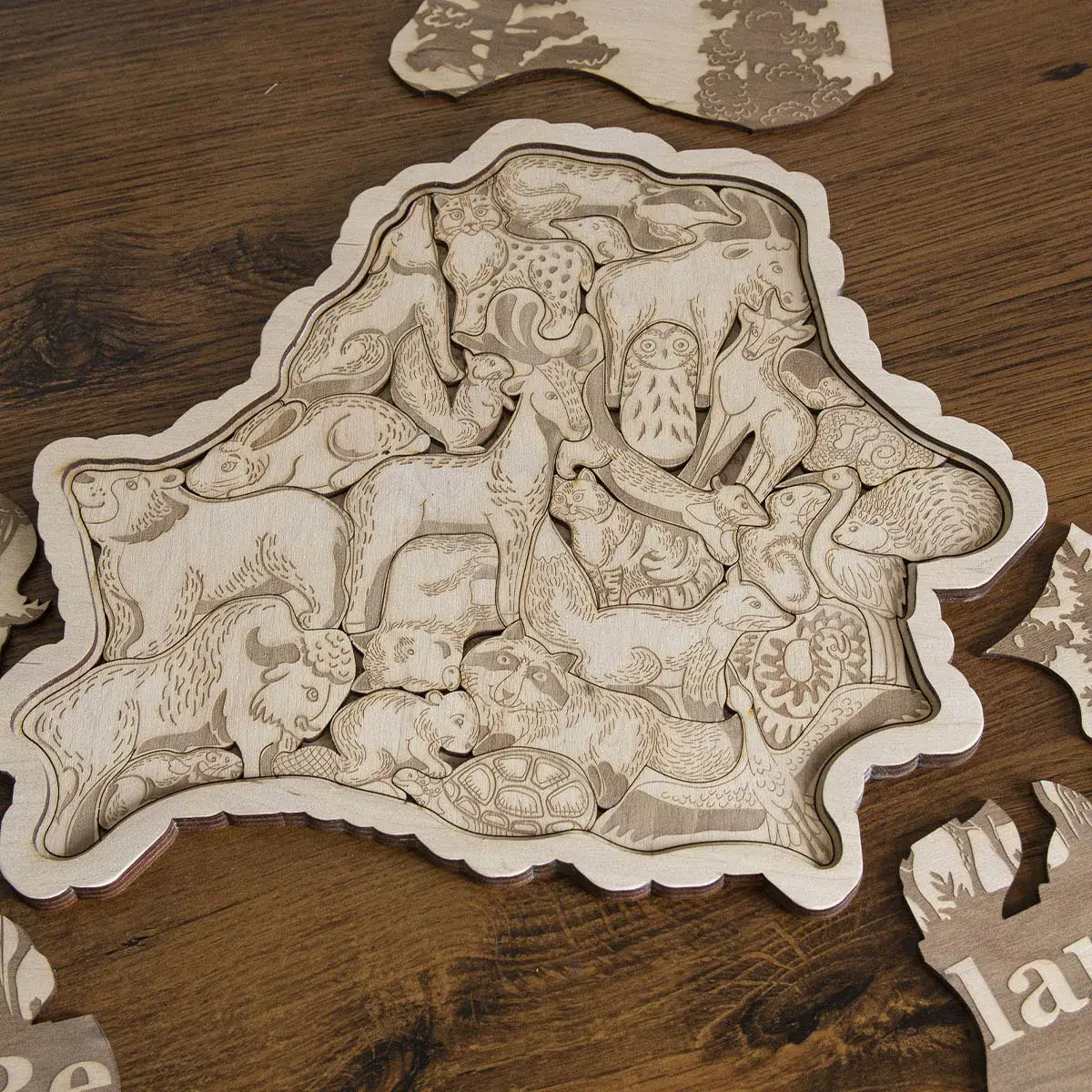 Карта-пазл в форме игры поможет познакомить ребенка и любого взрослого с фауной Беларуси (животными Беларуси).