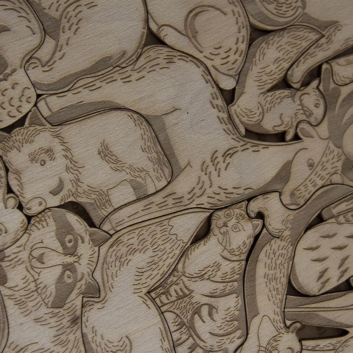 Карта многоуровневая и включает 3 слоя — обложка, пазл с животными, список животных