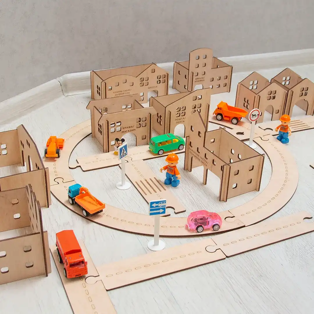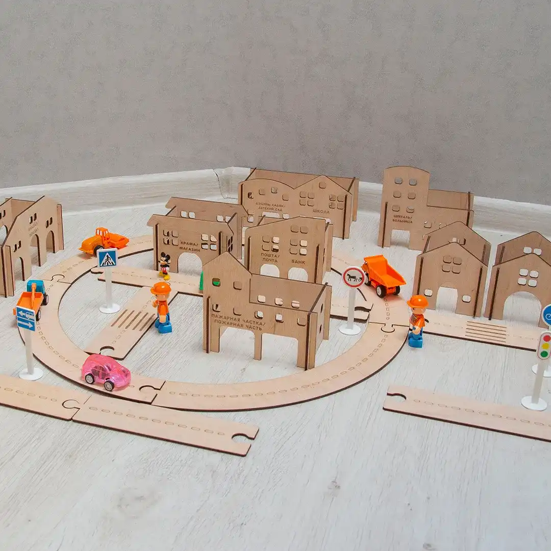 Почувствуйте себя со своим ребёнком градостроителями, постройте свой город мечты со зданиями и дорогами, поселите своих любимых героев, пустите транспорт.