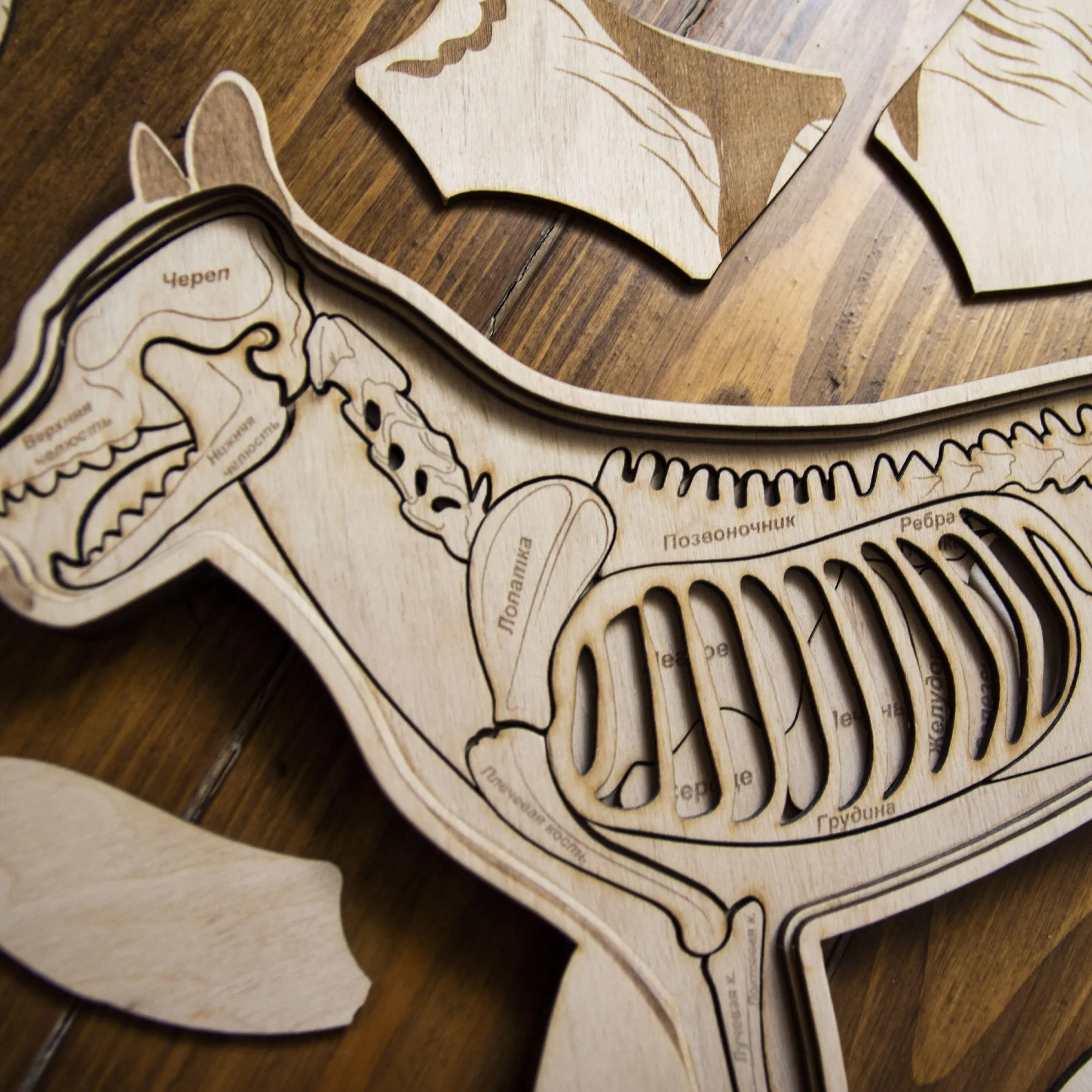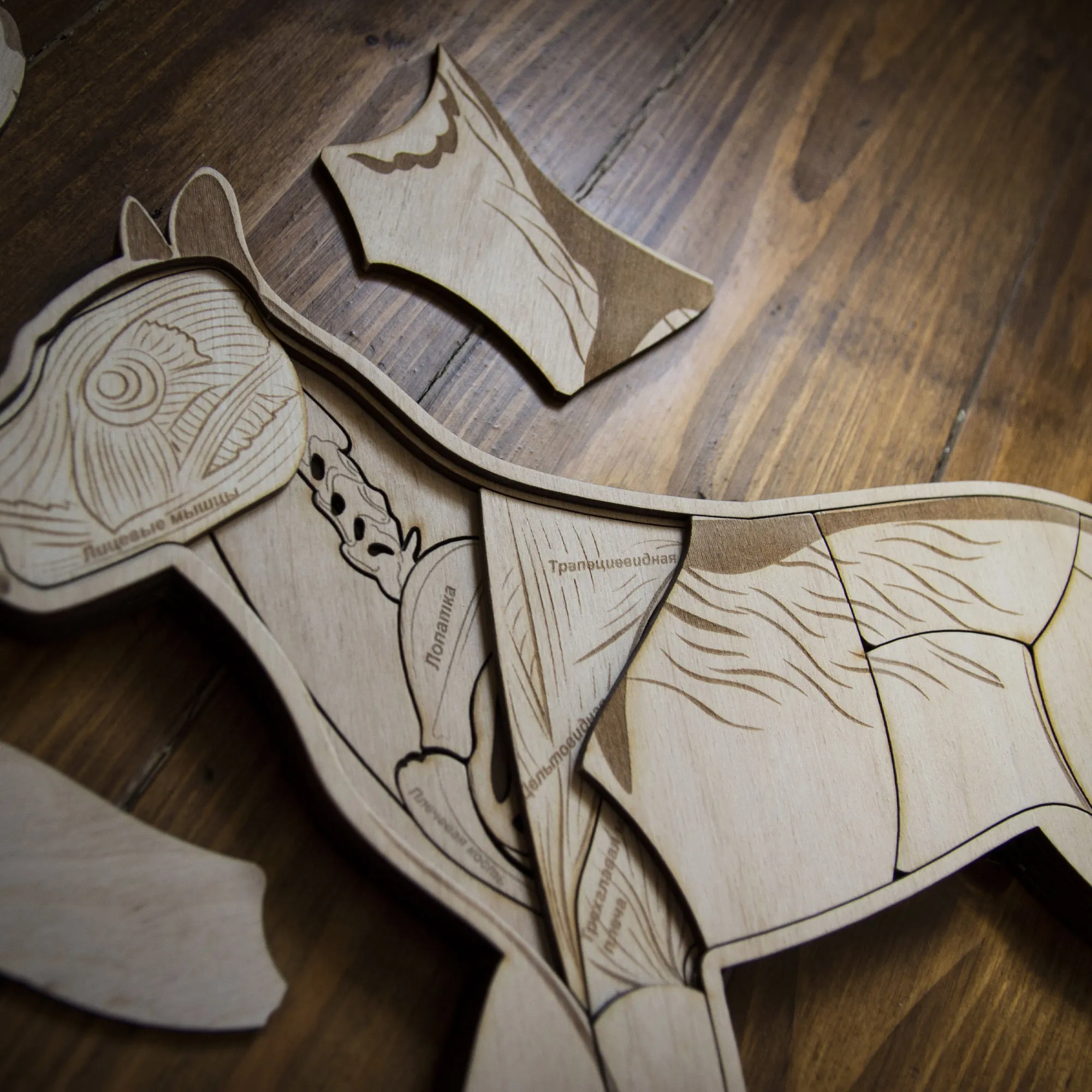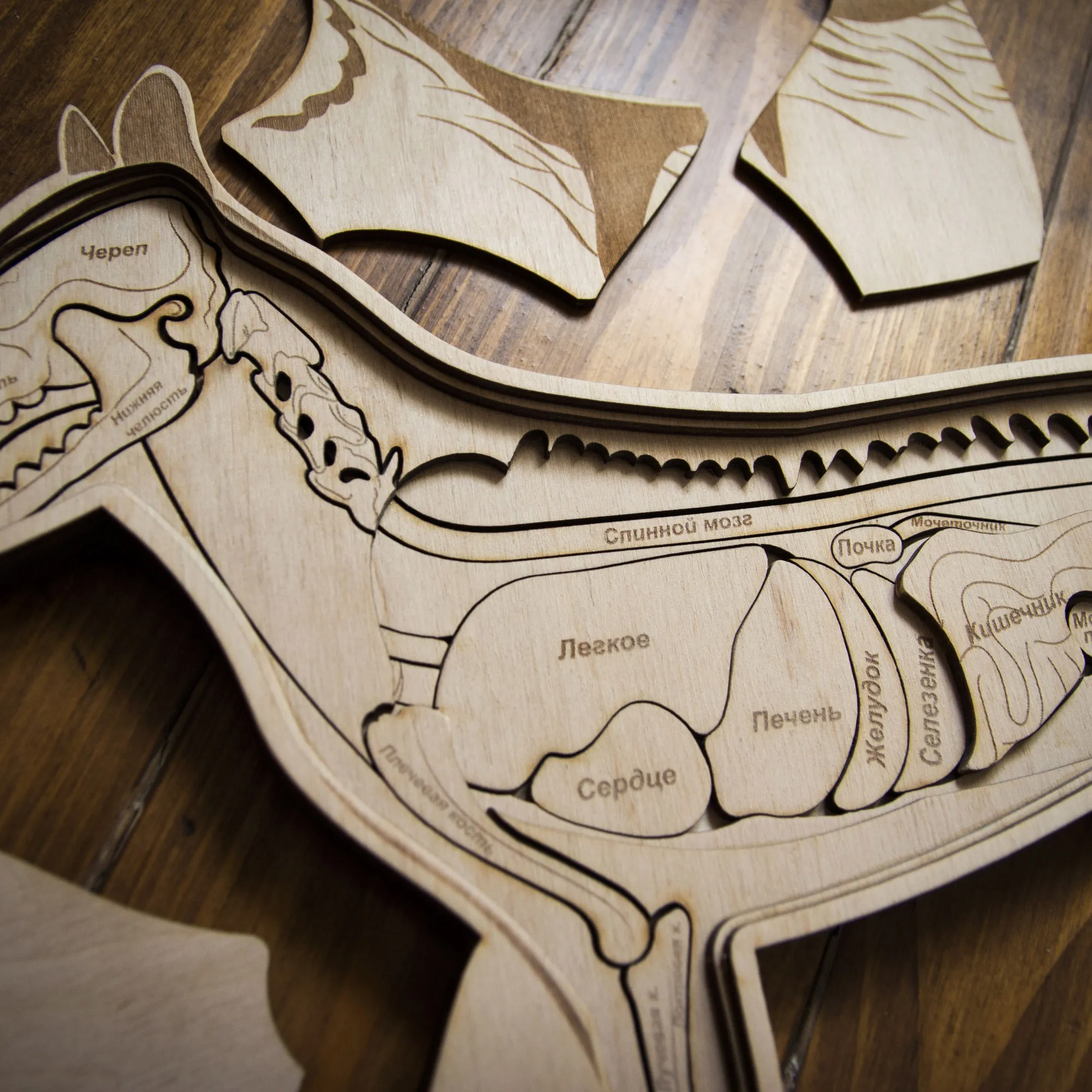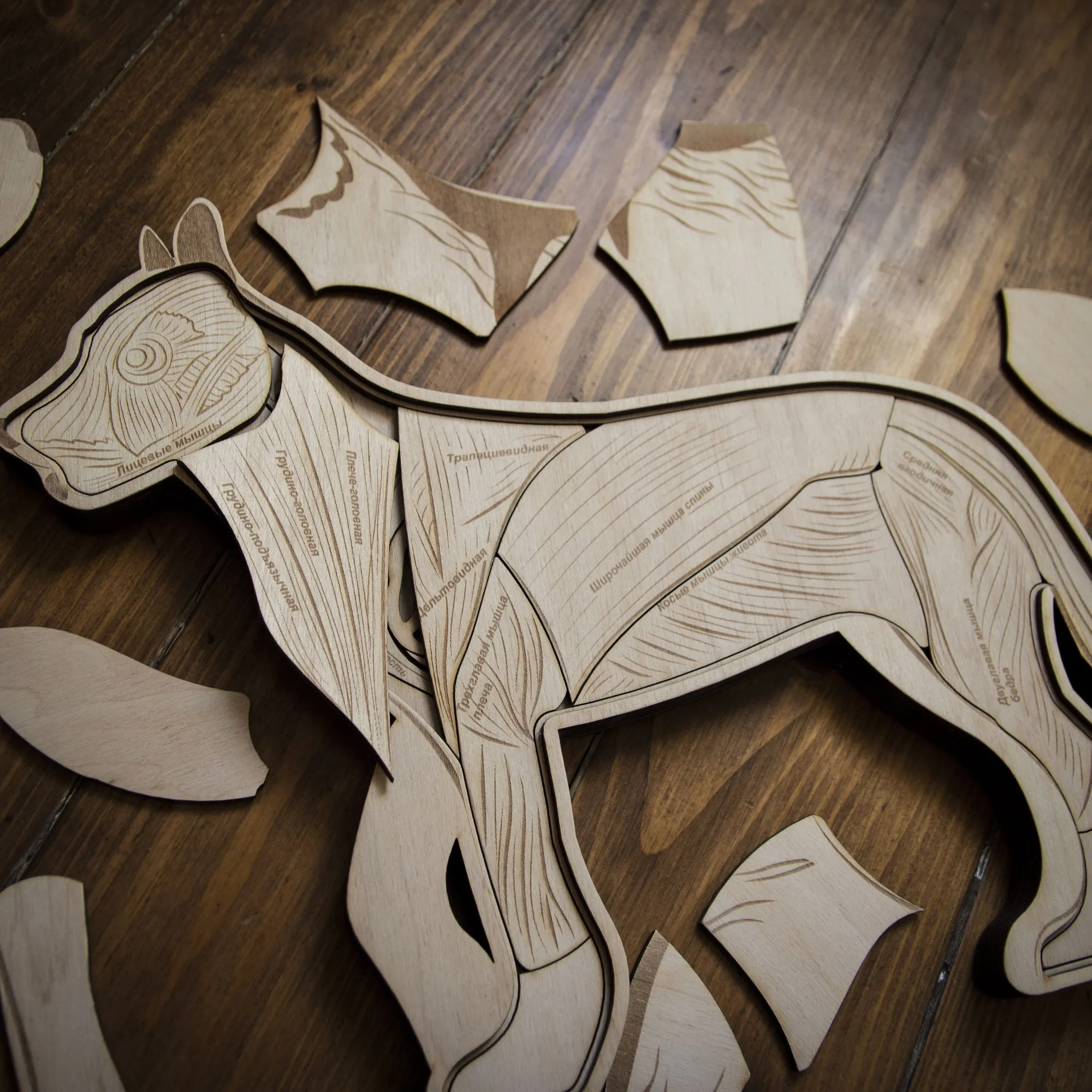 Пазл познакомит с внутренним строением, расположением мышц, костей органов у собаки. Станет прекрасным подарком и развивающей игрушкой для любителей анатомии.